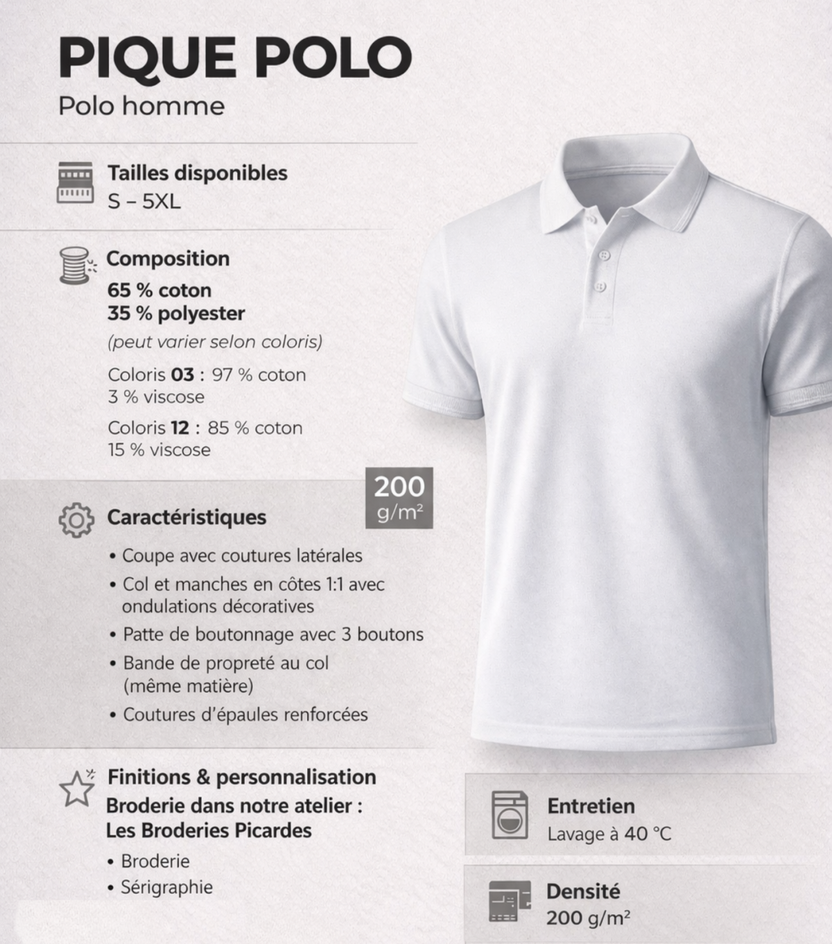 Taille S-3XL Piqué, 65 % coton, 35 % polyester
